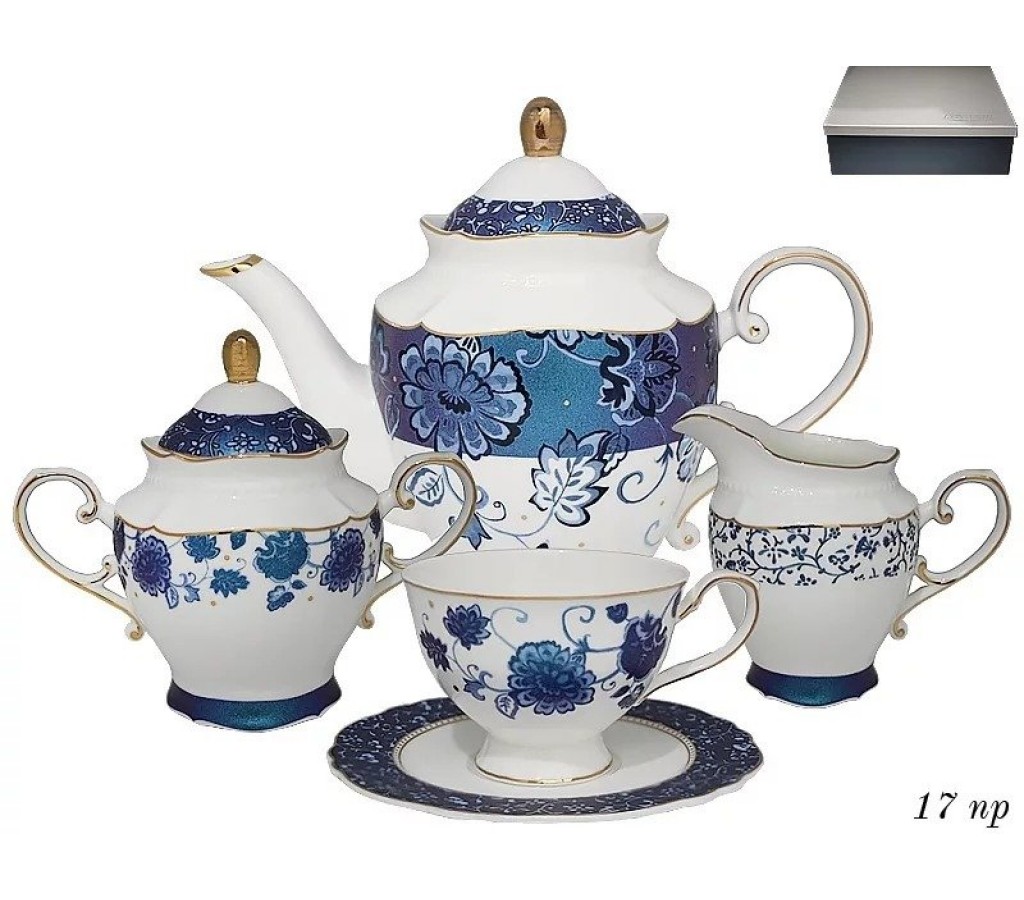 Чайный сервиз Lenardi Гжель на 6 персон 17 предметов. Материал фарфор.