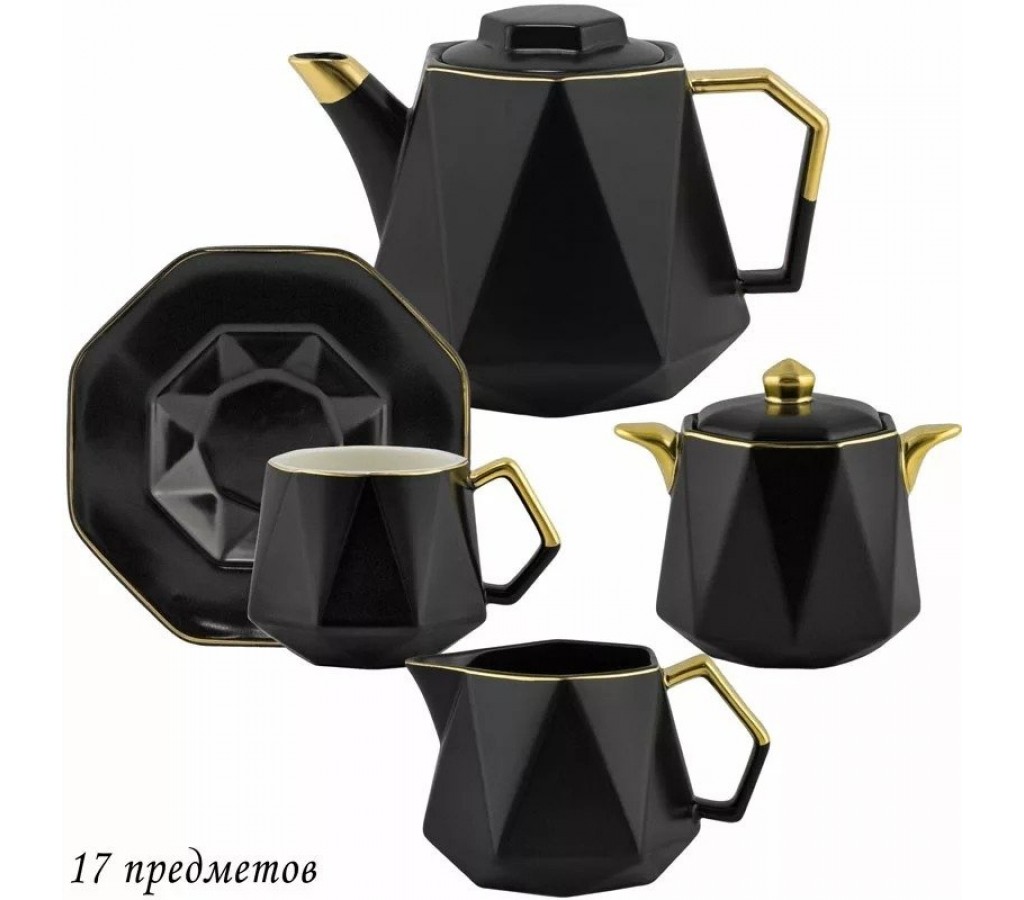 | Чайный сервиз Lenardi Грани черный 17 предметов 220 мл | |