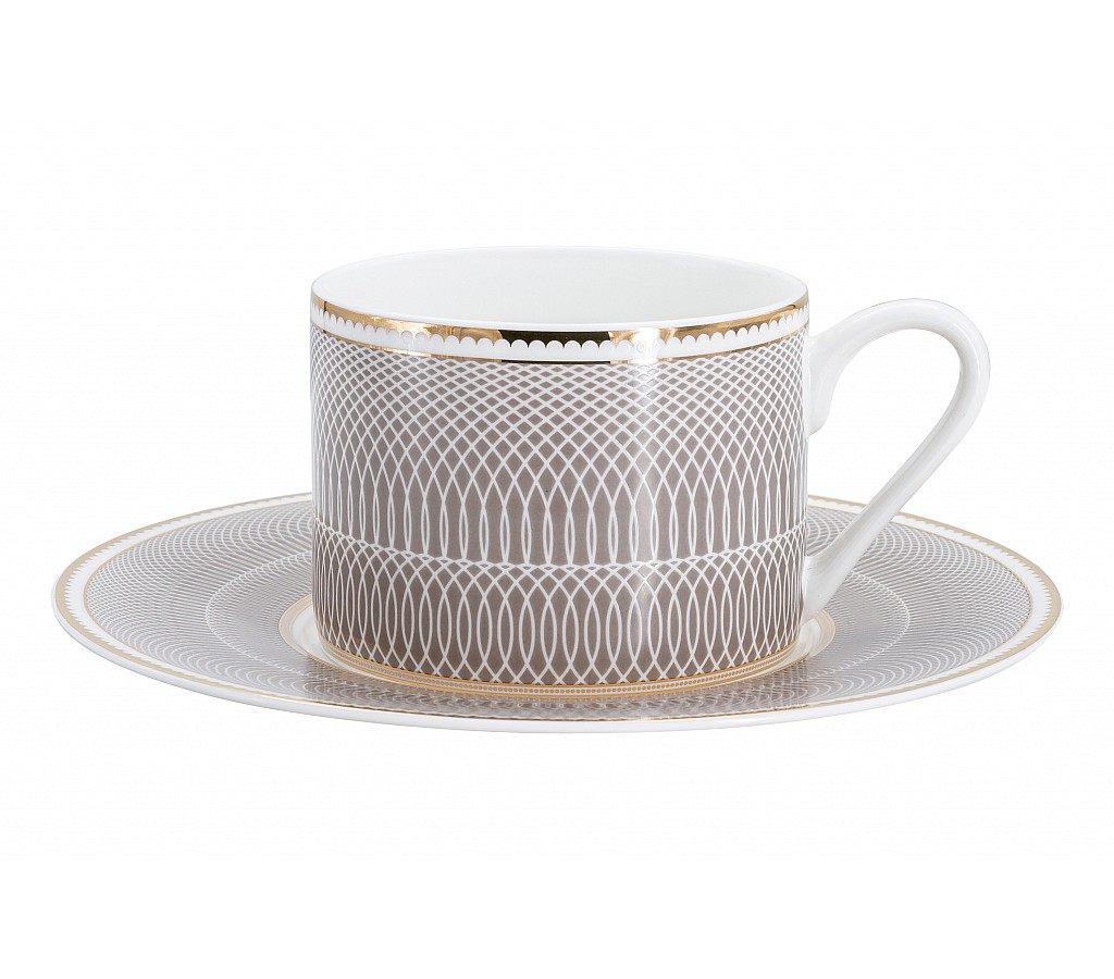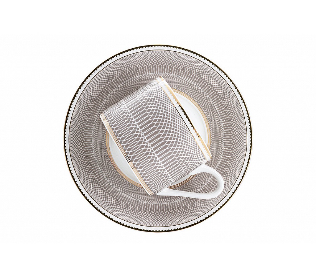 6 чашек 0,22л, 6 блюдец 17 см, 6 тарелок 21см, чайник 1,25 л, сахарница 0,48 л, молочник 0,38 л