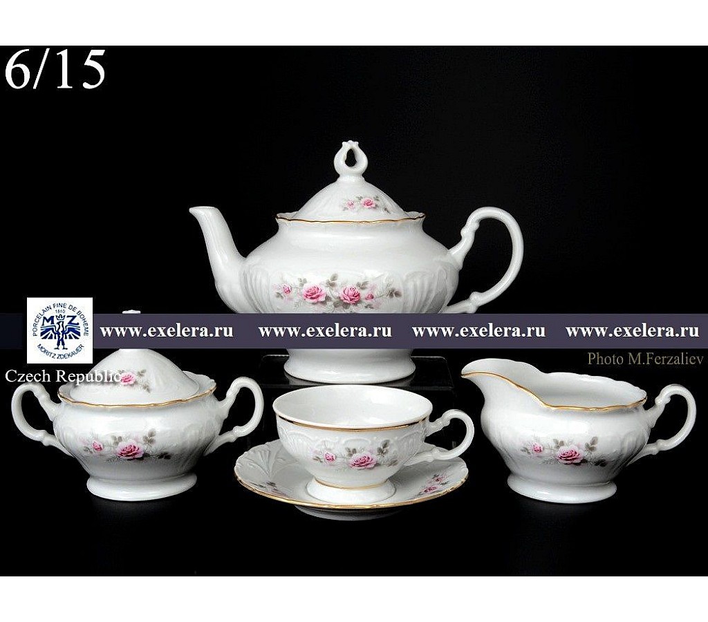 | Чайный сервиз Лиана Серая роза золото MZ на 6 персон 17 предметов | |