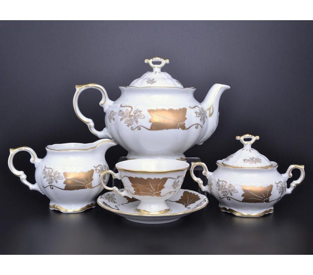 Чайный сервиз Мария Луиза Кленовый лист Белый Carlsbad на 6 персон