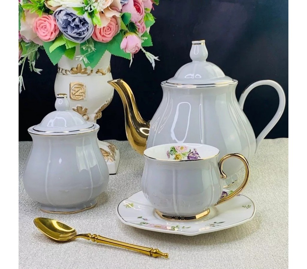 Чайный сервиз Нежность Lenardi серого цвета на 6 персон 16 предметов