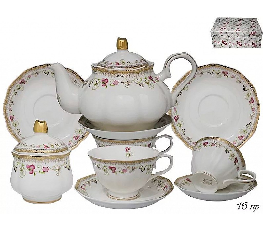Чайный сервиз Ирис Lenardi на 6 персон 16 предметов упакован в подарочную коробку. Рекомендуется мыть руками. Не использовать в микроволновой печи.