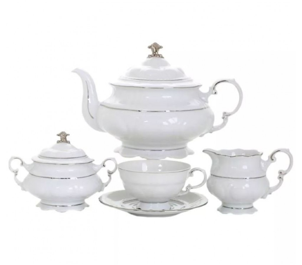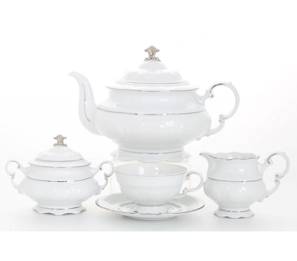 Чайный сервиз известного чешского производителя посуды Leander (Леандер) из коллекции "Соната 1138" выполнен из прочного и долговечного фарфора, который, благодаря непревзойденному качеству, высоко ценится во всем мире. По всему периметру посуды имеется рельефное тиснение, а волнистые края обрамлены тонким серебристым кантом. Сервиз "Соната 1138" является воплощением изысканного стиля, и станет главным украшением любого застолья.