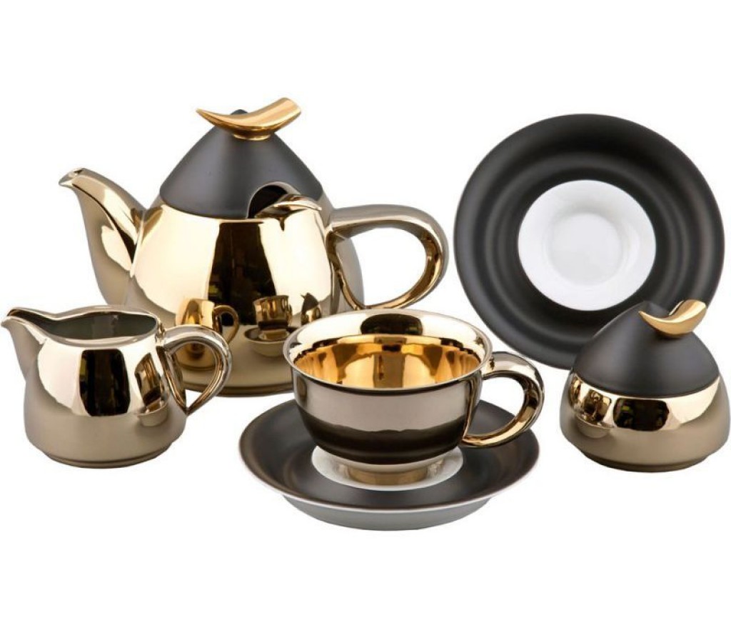 Основная идея коллекции «Кельт» почерпнута в культуре кельтской истории и мифологии. К примеру, петелька на крышке представляет украшение, аналогичное тому, какое было у кельтских воинов на брони шлема. Подобные элементы реализованы в других предметах коллекции и декорированы глянцевой платиной или золотом. Данный мотив весьма популярен. Как оказалось, количество поклонников богатой таинствами кельтской мифологии очень и очень велико. Состав сервиза: Чайник 1,2 л., сахарница 0,20 л., молочник 0,30 л., чашка с блюдцем 0,35 л (6 шт).