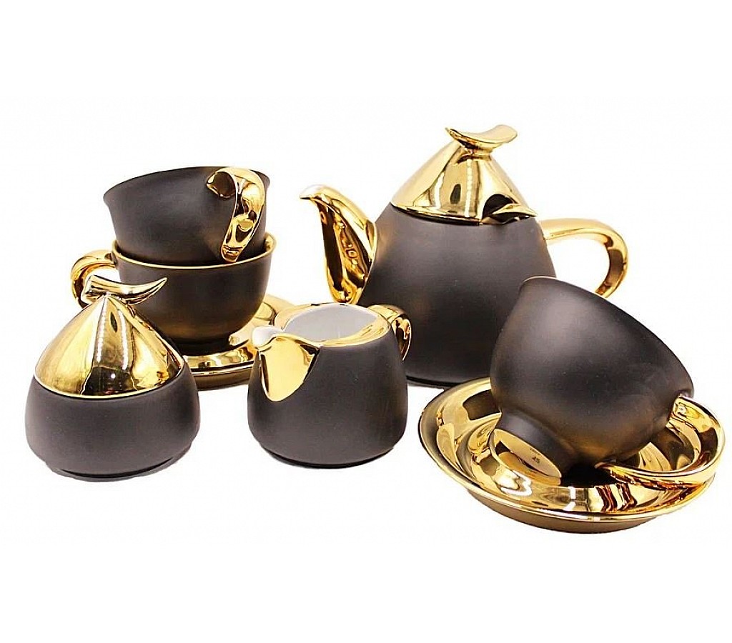 Основная идея коллекции «Кельт» почерпнута в культуре кельтской истории и мифологии. К примеру, петелька на крышке представляет украшение, аналогичное тому, какое было у кельтских воинов на брони шлема. Подобные элементы реализованы в других предметах коллекции и декорированы глянцевой платиной или золотом. Данный мотив весьма популярен. Как оказалось, количество поклонников богатой таинствами кельтской мифологии очень и очень велико. Состав сервиза: Чайник 1,2 л., сахарница 0,20 л., молочник 0,30 л., чашка с блюдцем 0,35 л (6 шт).