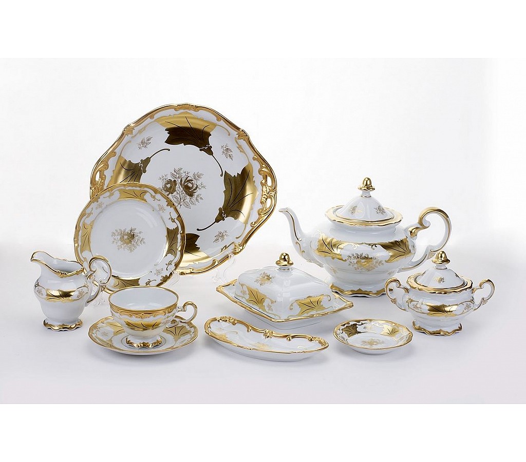 Сервиз чайный Кленовый лист белый Weimar Porzellan на 12 персон 54 предмета