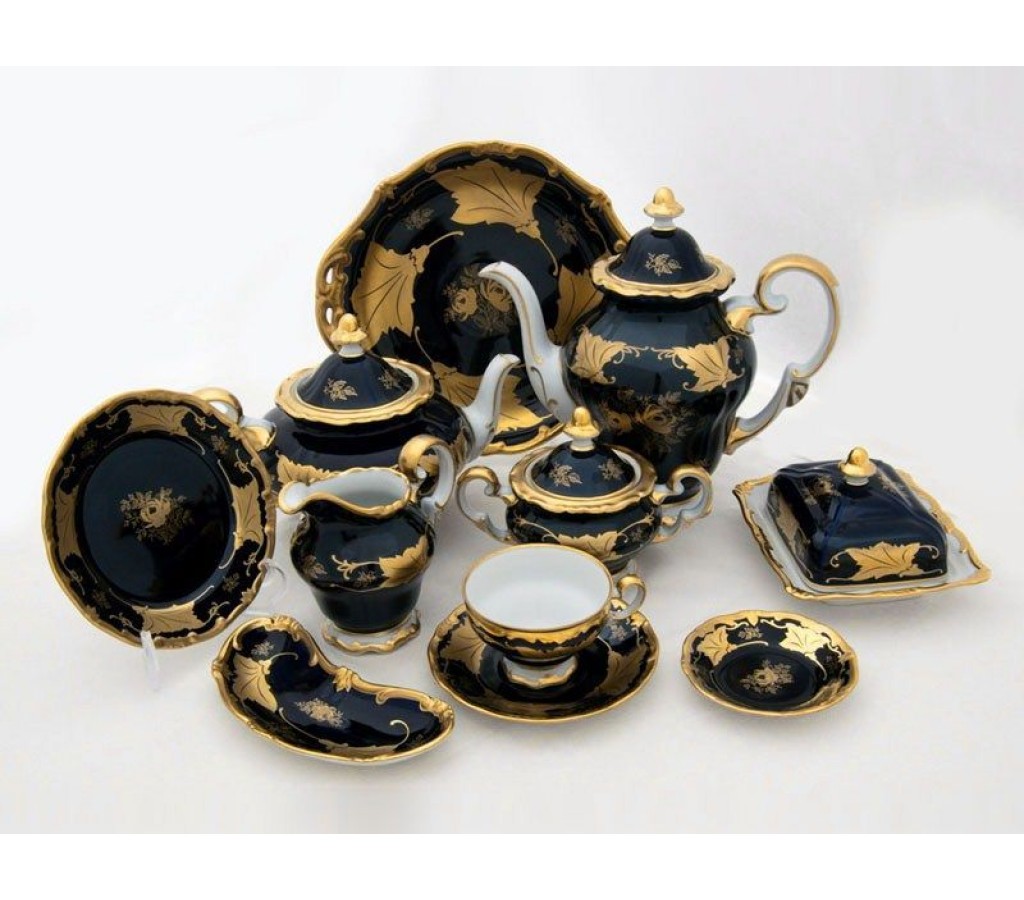 Сервиз чайный Кленовый лист синий Weimar Porzellan на 6 персон 29 предметов: