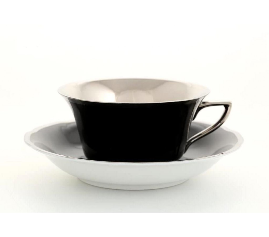 Чашка низкая с блюдцем Виндзор, Сажа, платина Leander 0,15 л