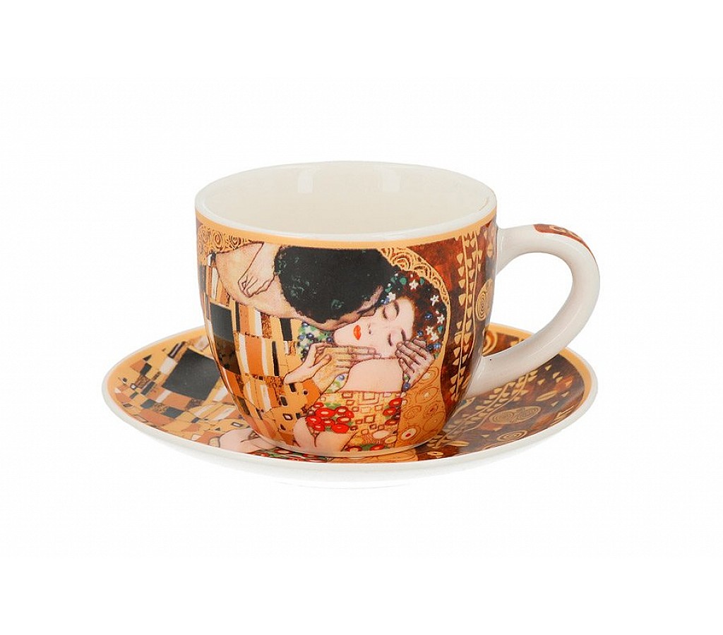 Чашка с блюдцем Поцелуй (Г. Климт) Carmani 0,08 л. Не использовать в СВЧ. Мыть мягкими моющими средствами и в посудомоечной машине.