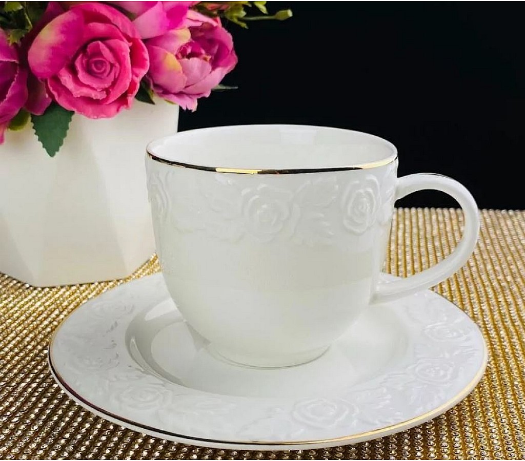 Посуда из серии Белая роза выполнена из высококачественного Изделия простого лаконичного дизайна на бортике с изящным и объемным узором в виде распустившейся розы, по краю золотая отводка. В серии посуды из белого фарфора представлен широкий ассортимент товаров для сервировки стола, которые, несомненно, впишутся в любой интерьер. Набор упакован в подарочную коробку.Состав набора: