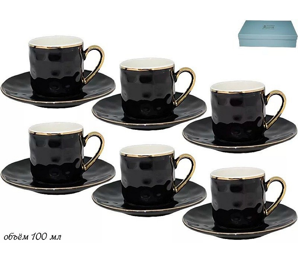 Кофейный набор Блеск Lenardi черный на 6 персон 12 предметов. Не рекомендуется мыть в посудомоечной машине и использовать в микроволновой печи. Подарочная коробка.