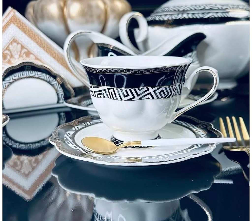 Кофейный набор Изольда Lenardi на 6 персон 12 предметов изготовлен из фарфора высочайшего качества. Набор декорирован геометрическим рисунком с широкой черной полосой и золотой отводкой. Набор кофейных чашек с блюдцами упакован в подарочную коробку.Состав кофейного набора Изольда Ленарди: