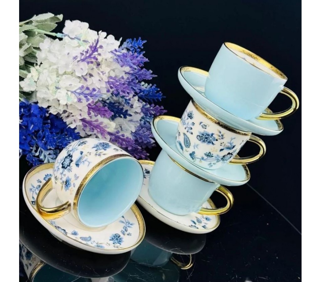 Кофейный набор Lassa Lenardi на 6 персон 12 предметов голубой изготовлен из прочного и долговечного фарфора. Набор выполнен в уникальном дизайне, 3 чашки с блюдцем однотонные и 3 чашки с блюдцем в цветочном декоре.Упакован в подарочную коробку. Рекомендуется мыть вручную.Комплектация: