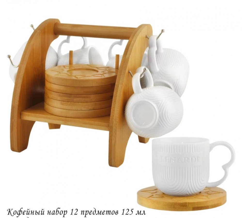 - Кофейный набор на 6 персон 12 предметов 125 мл Bamboo Lenardi на подставке
