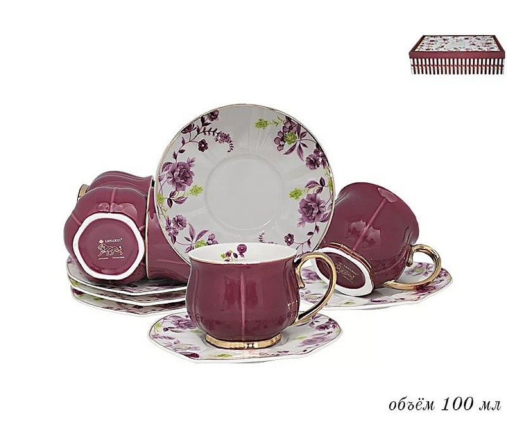 Кофейный набор Нежность Lenardi фиолетовый на 6 персон 12 предметов. Не рекомендуется мыть в посудомоечной машине и использовать в микроволновой печи. Подарочная коробка.