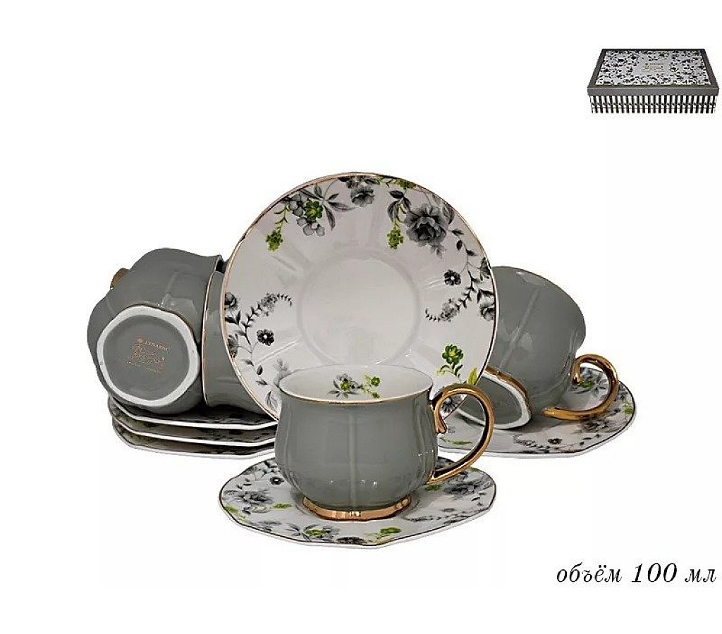 Кофейный набор Нежность Lenardi серый на 6 персон 12 предметов. Не рекомендуется мыть в посудомоечной машине и использовать в микроволновой печи. Подарочная коробка.