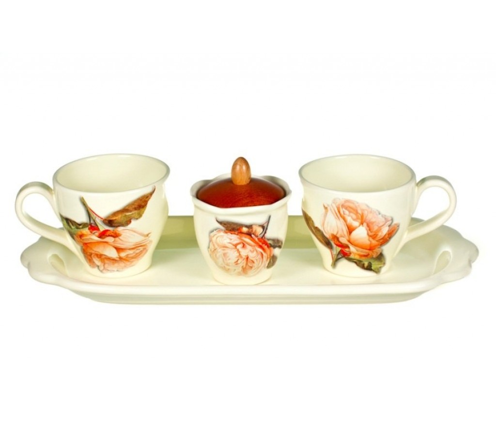 | Набор для кофе на подносе Роза Nuova Ceramica на 2 персоны | |