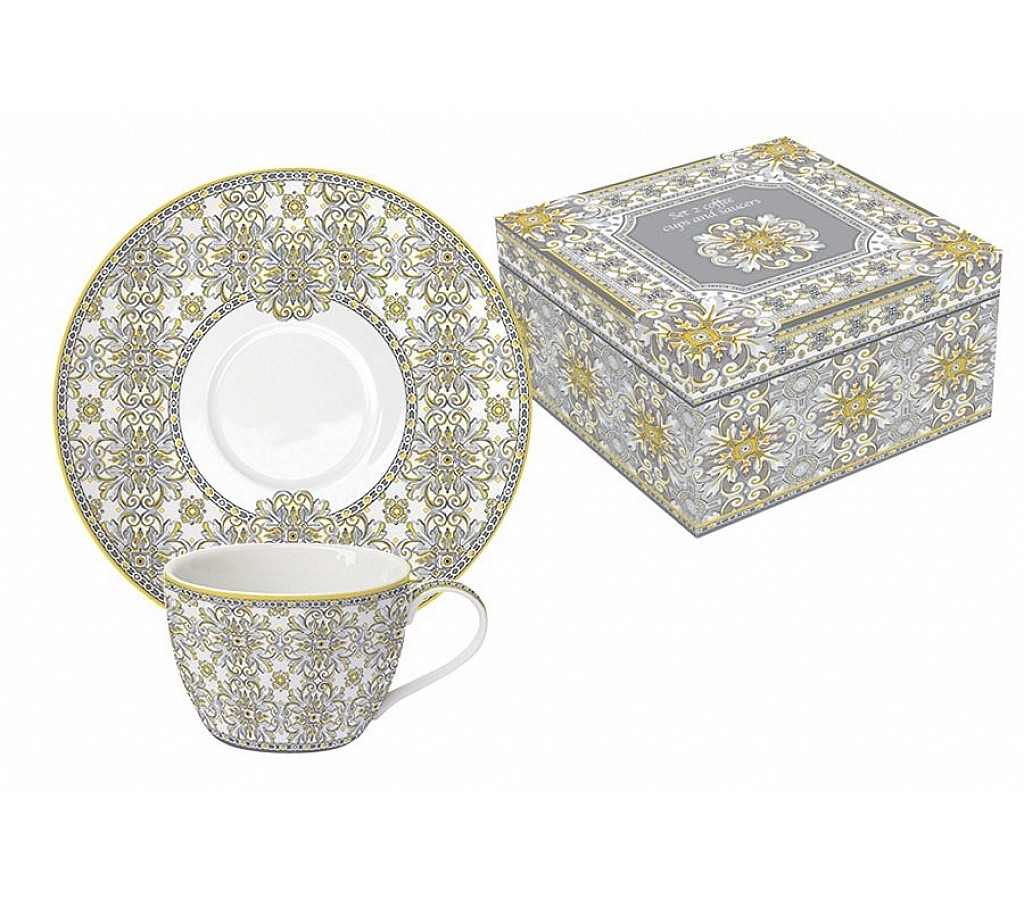| Набор: 2 чашки + 2 блюдца для кофе Майолика (серая) Easy Life (R2S) | |