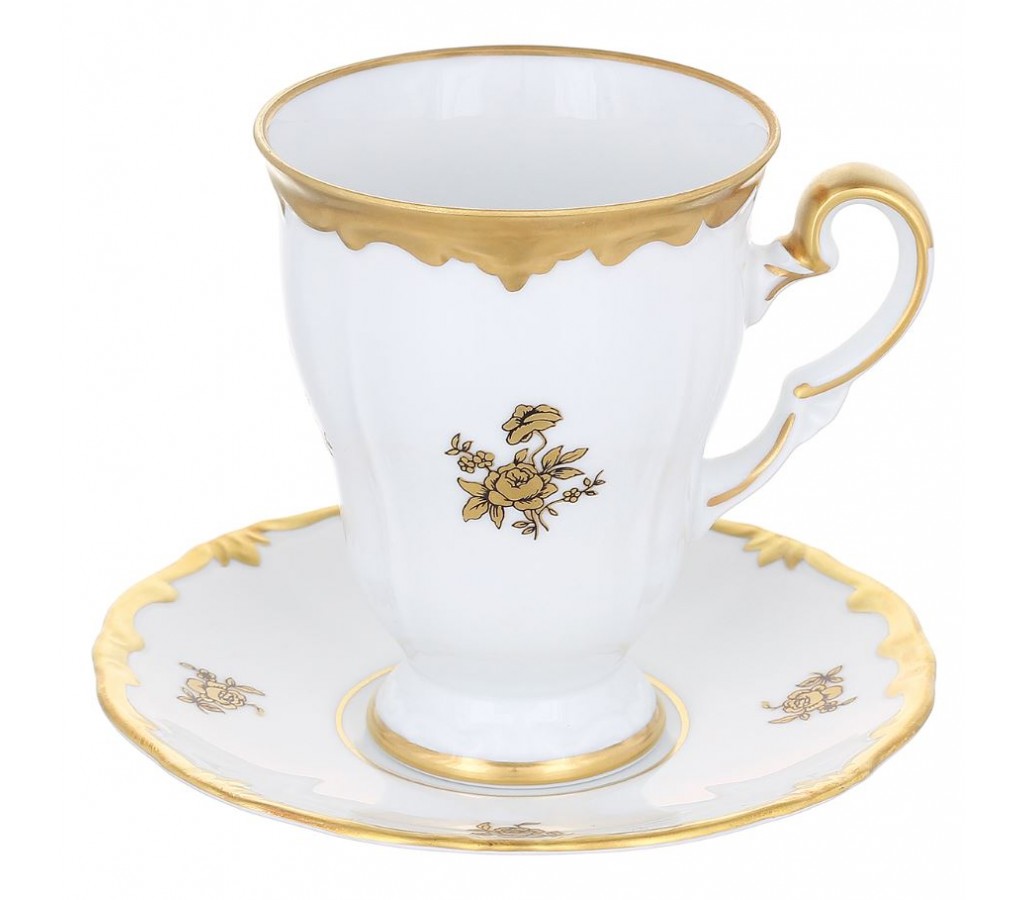 Набор для капучино: чашка и блюдце - 2 предмета Weimar Porzellan "Роза золотая".