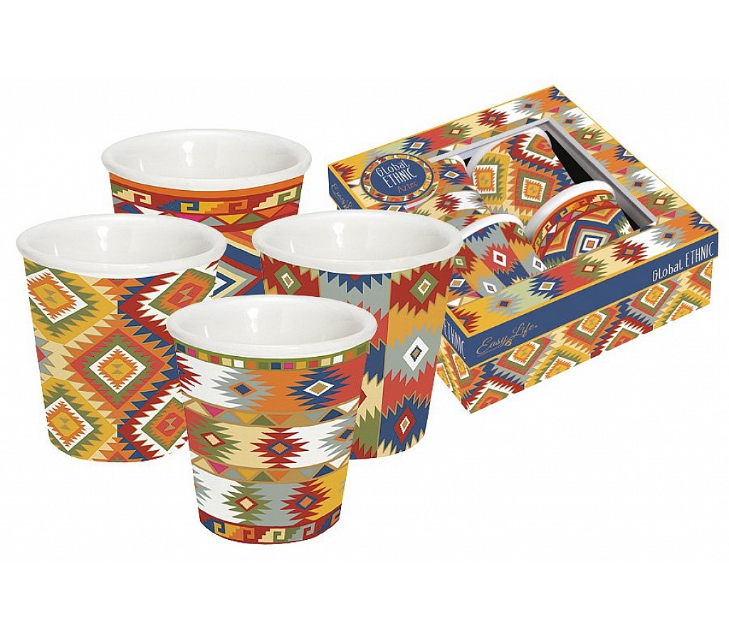 Набор из 4-х кружек д/эспрессо Ацтеки Easy Life R2S в подарочной упаковке 0.1л.