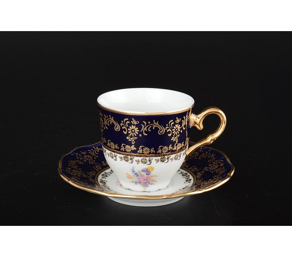 Набор кофейных пар 170 мл Офелия Полевой цветок Кобальт MZ (6 пар)