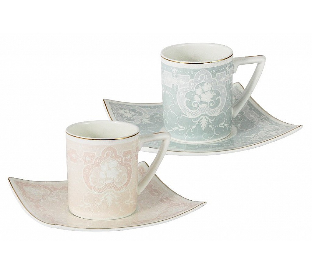 Набор: 2 чашки + 2 блюдца для кофе (розовая и голубая) Инфанта, объем 0,1 литра.