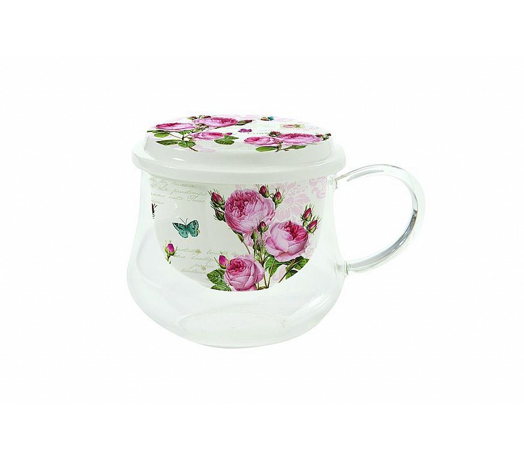 | Чашка стеклянная с фарфоровым ситечком Розы | |
