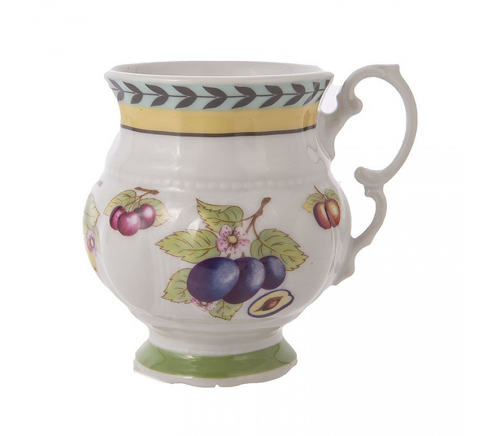 Кружка 200мл. Leander Соната 2703 Фрукты выполнена из фарфора высокого качества. Красивый яркий декор будет эффектно смотреться и в городской квартире и в загородном доме. Вся посуда упакована в фирменные коробки. Ее можно мыть в посудомоечной машине и использовать в микроволновой печи.