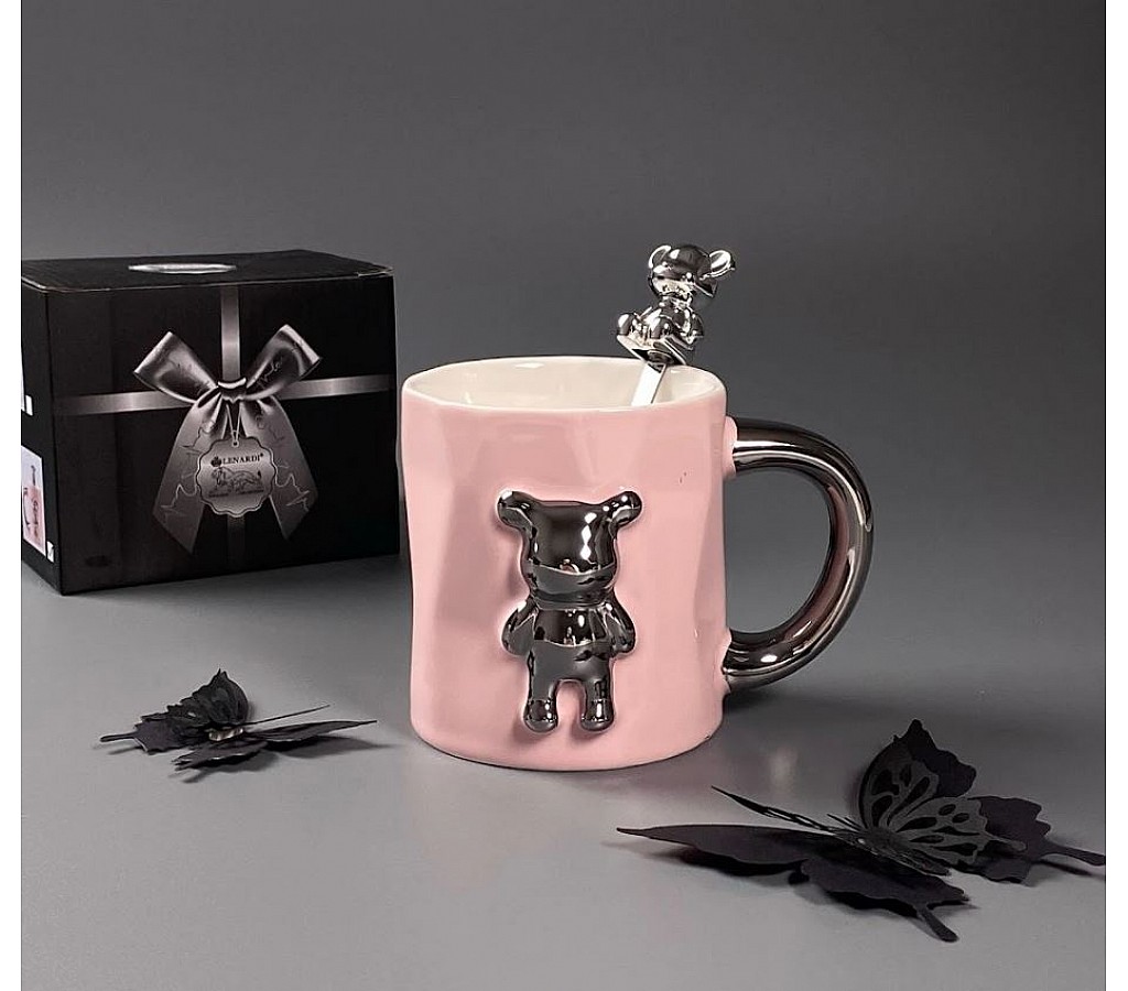 | Кружка 350 мл с ложкой Мишки Lenardi розовая | |