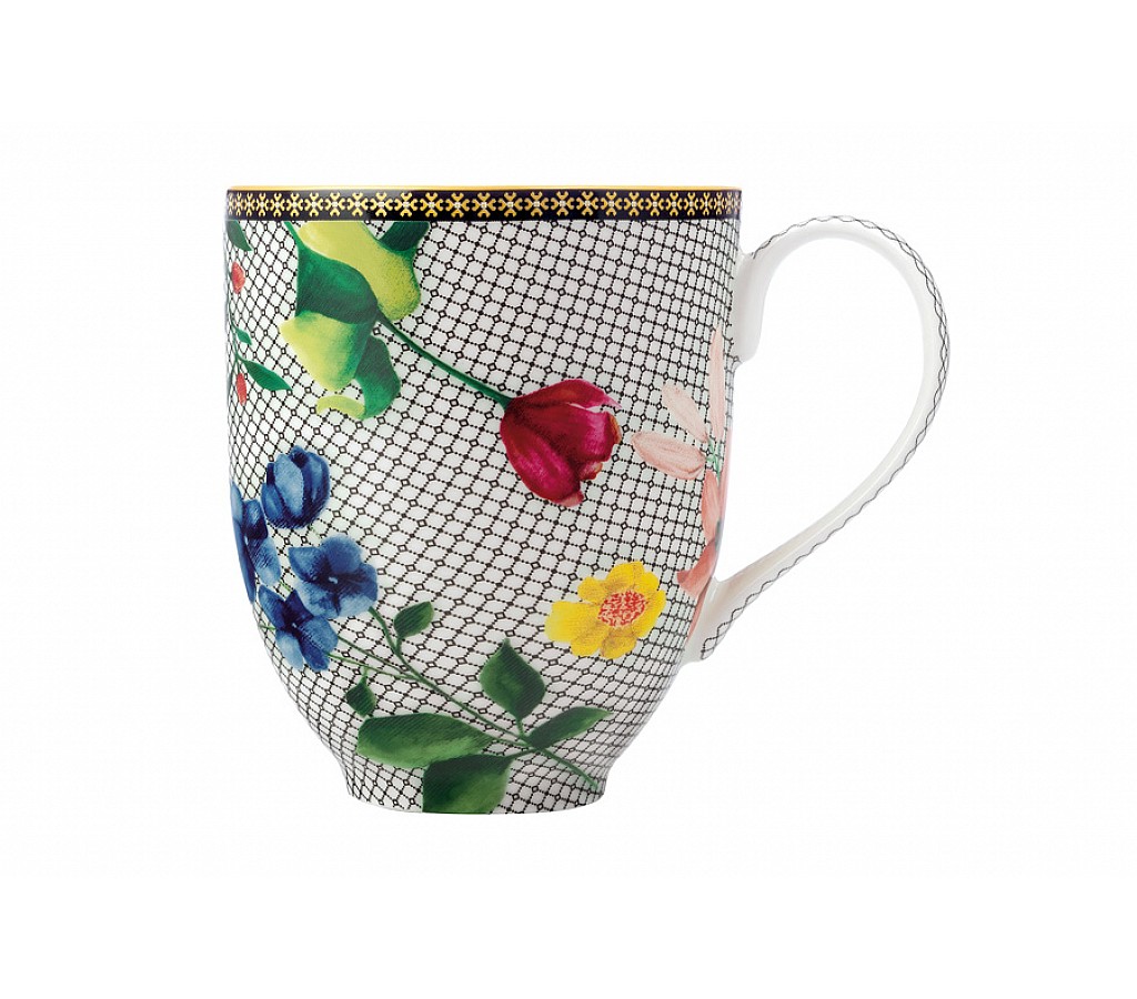 Кружка большая Contessa белого цвета с цветочным декором в подарочной упаковке. Объем 0.44 л