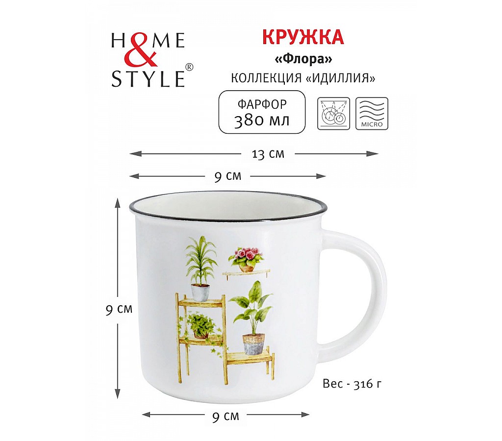Кружка Флора, 0,38 л. Мыть тёплой водой с применением жидких моющих средств. Можно использовать в СВЧ и мыть в посудомоечной машине