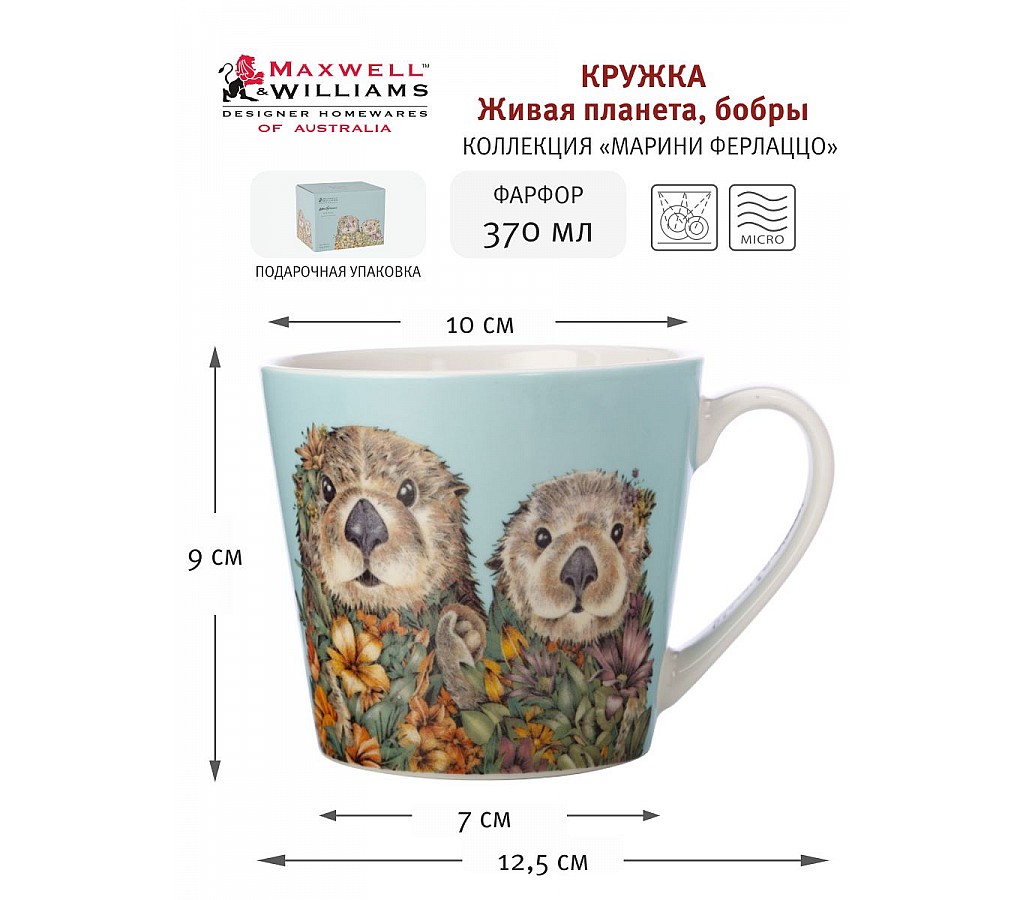 Кружка Живая планета бобры 370 мл. Подарочная упаковка. Мыть теплой водой с применением жидких моющих средств. Можно использовать в СВЧ и посудомоечной машине.