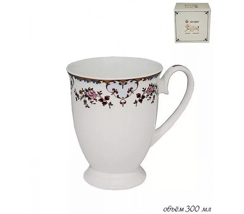 Кружка на ножке Lenardi Нежная роза объем 300 мл. Не рекомендуется использовать в микроволновой печи и мыть в посудомоечной машине, по причине возможного повреждения золотого декоративного покрытия. Подарочная коробка.