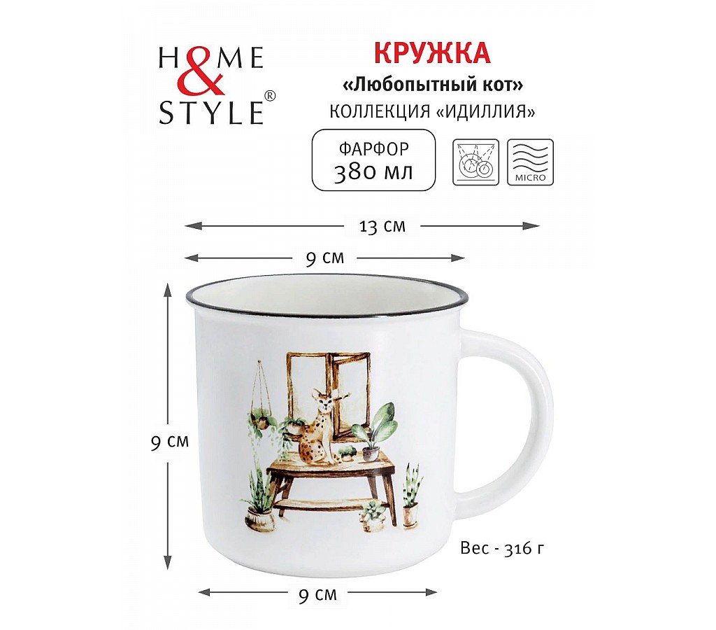Кружка Любопытный кот, 0,38 л. Мыть тёплой водой с применением жидких моющих средств. Можно использовать в СВЧ и мыть в посудомоечной машине