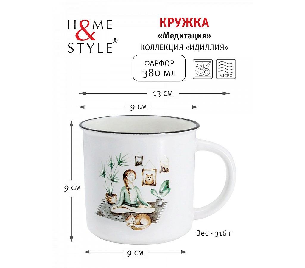 Кружка Медитация, 0,38 л. Мыть тёплой водой с применением жидких моющих средств. Можно использовать в СВЧ и мыть в посудомоечной машине