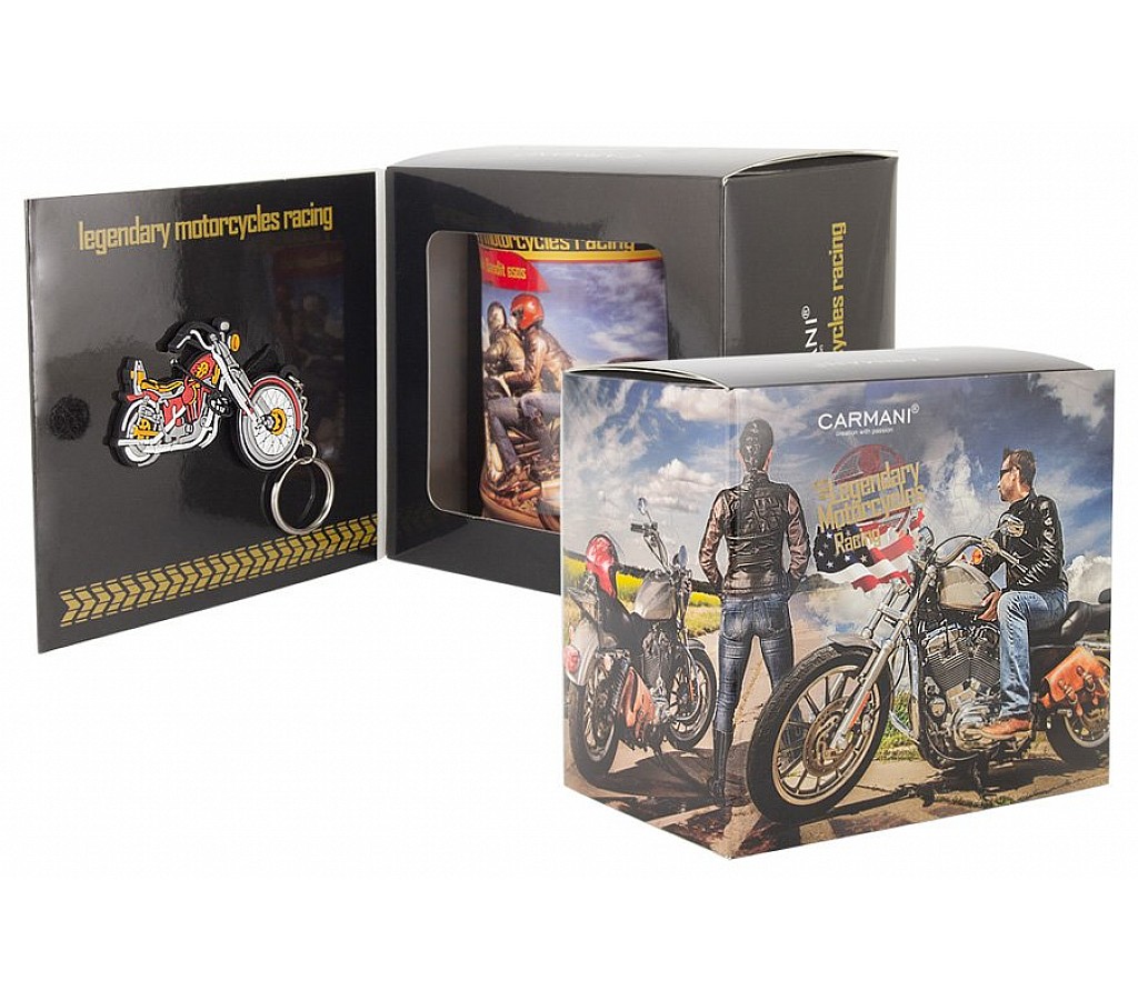 Кружка с брелоком Мотоцикл Харлей - Дэвидсон Спортстер 883, юноша. Размер: 0.5л. Подарочная упаковка.