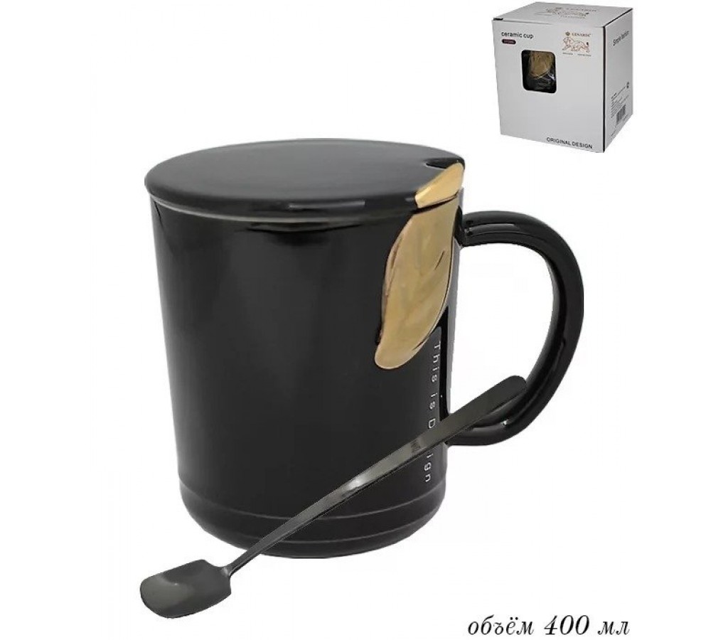 | Кружка с крышкой и ложкой Lenardi Листок черная 400 мл | |