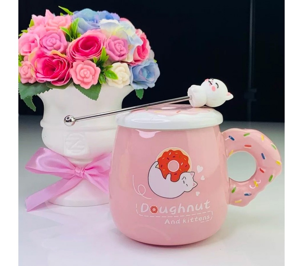 Кружка с крышкой и мешалкой Lenardi Cats розовый 360 мл. Подарочная коробка.