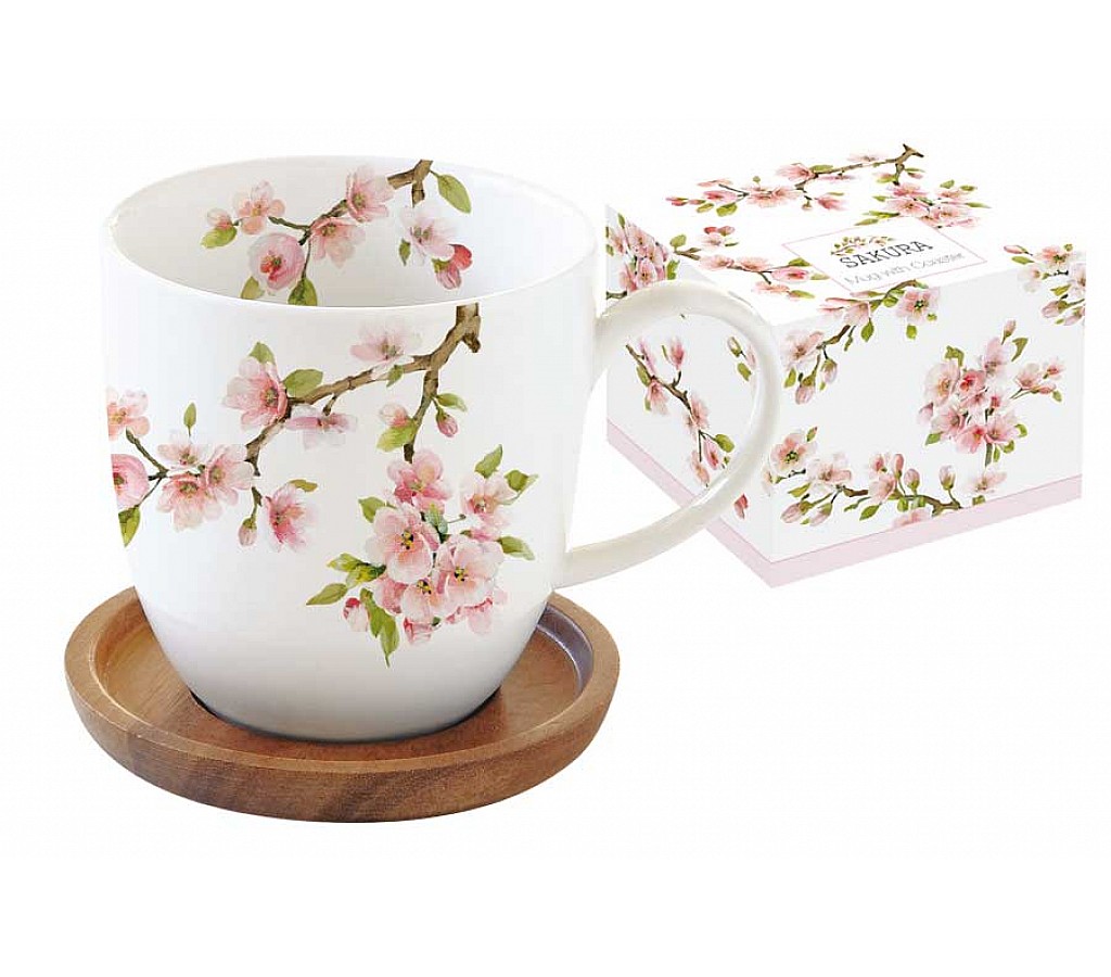 Кружка с крышкой/подставкой из акации Японская сакура Easy Life R2S в подарочной упаковке, объем 0.35л.