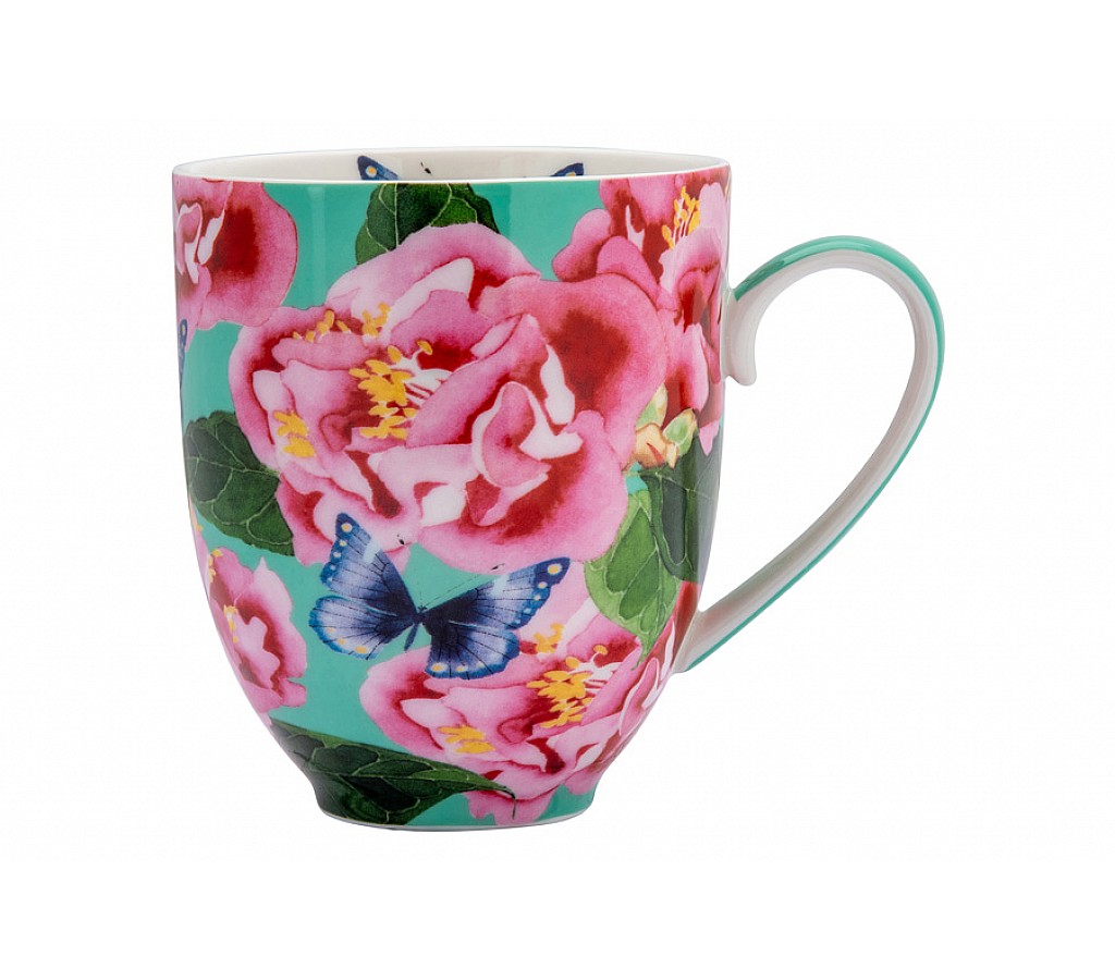 Кружка с подставкой Камелии, 0,4 л. кружка 0,4 л, подставка. Мыть тёплой водой с применением ЖМС. Можно использовать в СВЧ и мыть в посудомоечной машине
