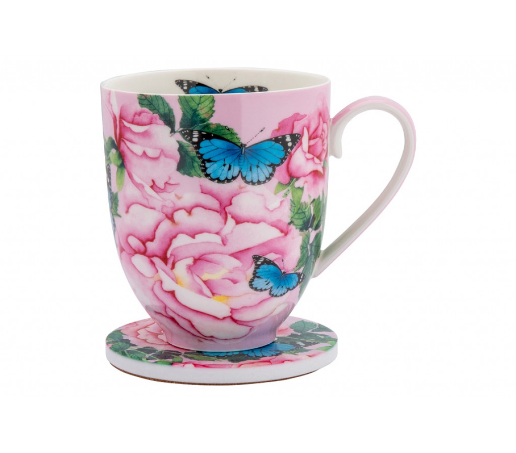 Кружка с подставкой Розы, 0,4 л. кружка 0,4 л, подставка. Мыть тёплой водой с применением ЖМС. Можно использовать в СВЧ и мыть в посудомоечной машине