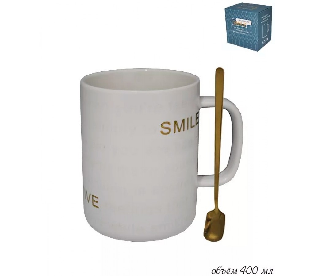| Кружка Smile Lenardi белая 400 мл с ложкой | |