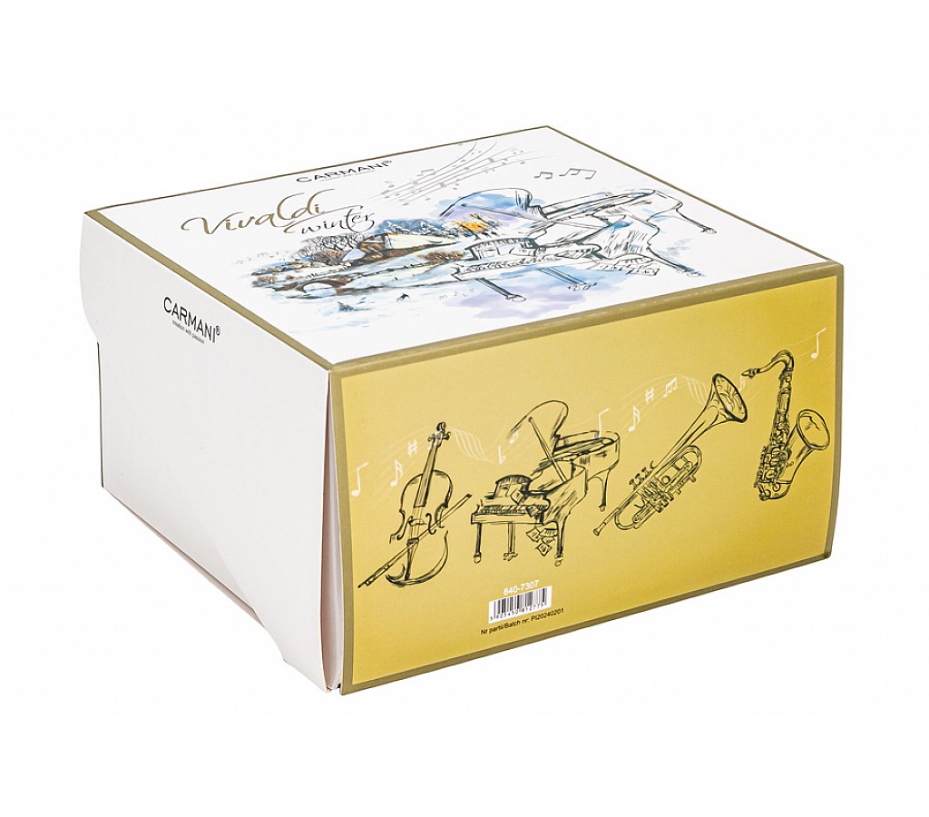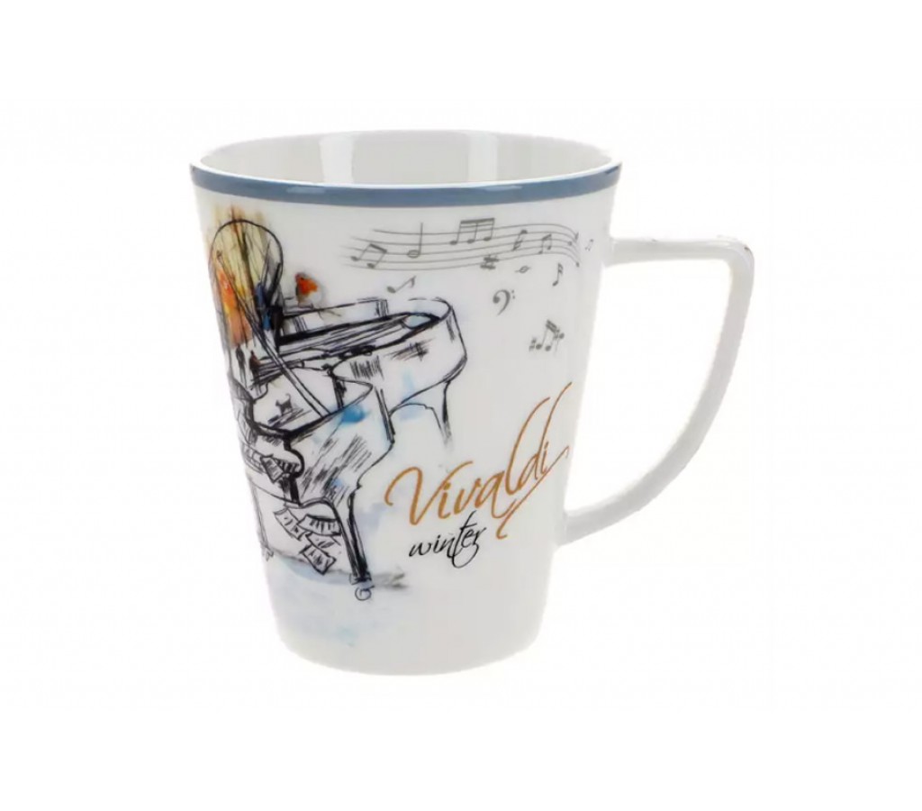 Кружка, 380 мл, фарфор F, белая, с голубым кантом, Зима, A. Vivaldi. Подарочная упаковка. Мыть мягкими моющими средствами. Можно использовать в СВЧ и в посудомоечной машине.