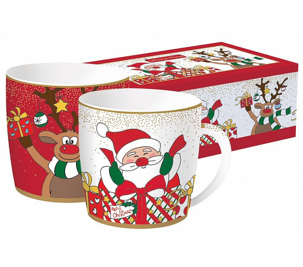 Набор из 2-х кружек Дед Мороз с друзьями в подарочной упаковке 0,35 л