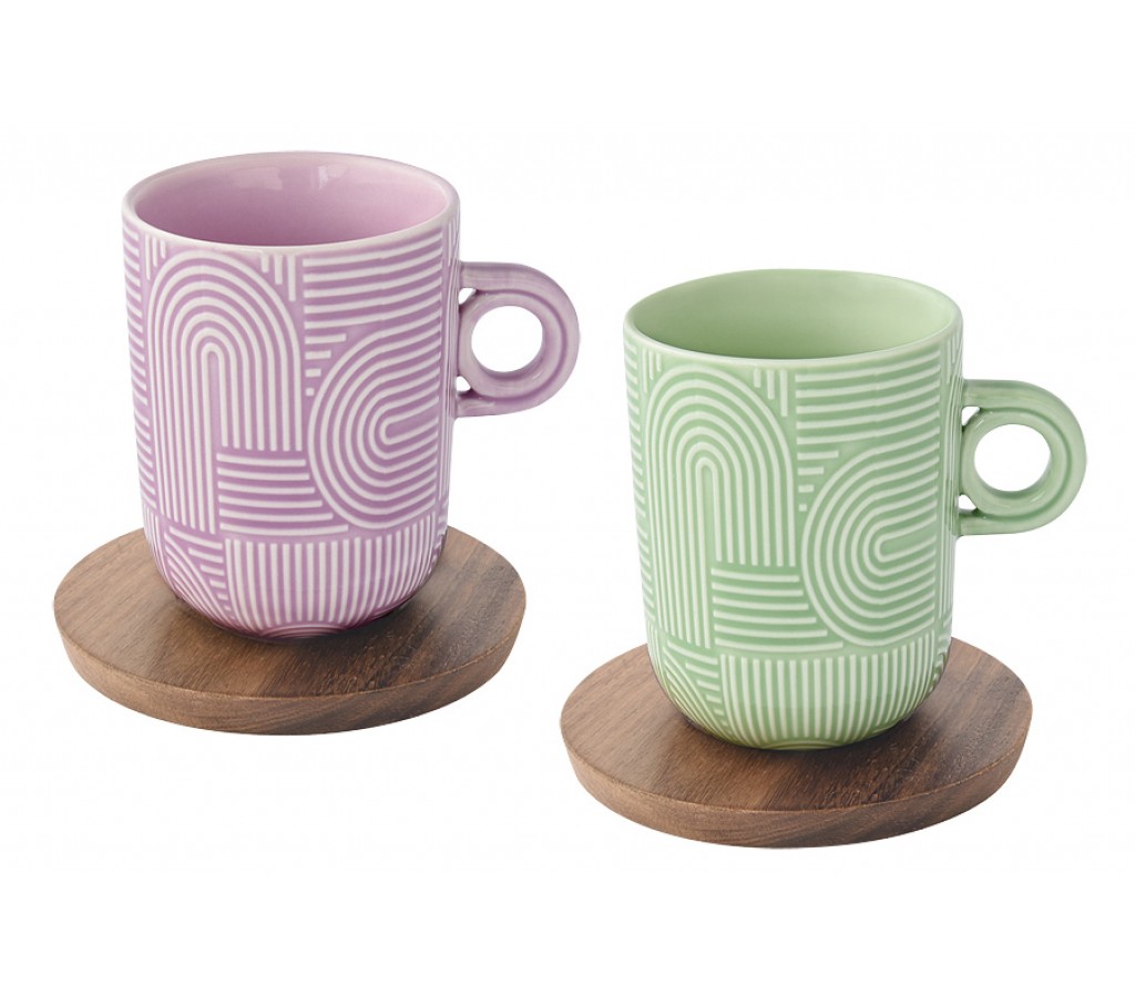 Набор из 2-х кружек Радуга сиреневая и зелёная Easy Life 350 мл. Подарочная упаковка. Мыть тёплой водой с применением жидких моющих средств. Можно использовать в СВЧ и мыть в посудомоечной машине. (кроме подставки)