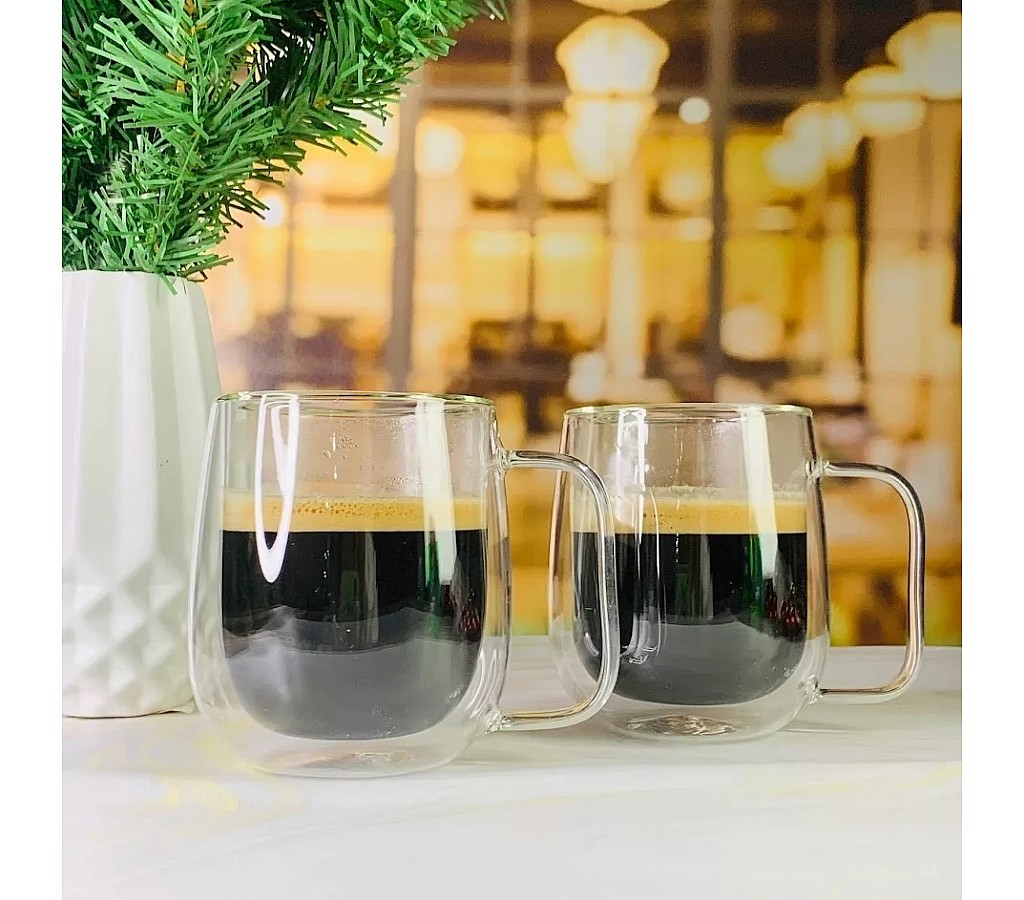 Набор стеклянных кружек с двойными стенками Lenardi объемом 300 мл. Рекомендуется мыть руками. Подарочная коробка.