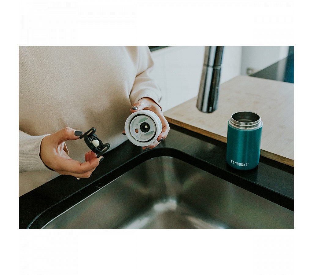 Сохраняет напитки горячими - 6 часов, холодными - 11. Изготовлена из нержавеющей стали высокого качества (18/8). Не содержит бисфенол А. Не протекает - 100% герметичность. Открывается и закрывается простым нажатием на кнопку. Запатентованная технология крышки Snapclean® позволяет легко и быстро произвести тщательную очистку бутылки. Крышка легко разбирается и подходит для мытья в посудомоечной машине. Устойчивое прорезиненное дно не царапает поверхность. Вариативность использования: питьевые бутылки Kambukka можно использовать с крышкой 3 в 1, а можно, наоборот, использовать термокружку в качестве питьевой бутылки, заменив крышку 3 в 1 на крышку-твист.