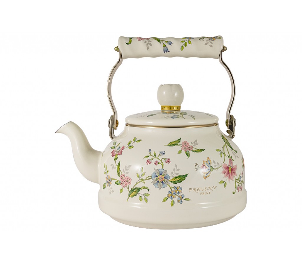 Чайник, 2,3 л, с крышкой, с покрытием, сталь, молочный, Цветы, Provence. Подарочная упаковка. Состав: Чайник 2,3 л, крышка. Пригоден для всех типов плит. Мыть тёплой водой без использования абразивных материалов и в посудомоечной машине. Не использовать в СВЧ.