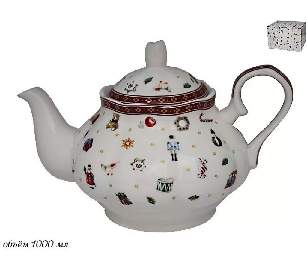 Чайник заварочный Новогодний Lenardi объемом 1 л. Можно мыть в посудомоечной машине и использовать в микроволновой печи. Упакована в подарочную коробку.